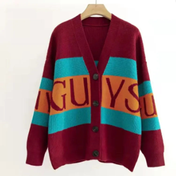 "Women are changeable and different". If you get used to one style and change one style occasionally, you will have a bright feeling in front of you. For women, the simplest and direct way to change their style is to dress up. What should we do? In the monotonous autumn, if you are tired of wearing pure color sweaters, it's time to try contrast color sweaters. The upper body will give people a bright effect and create a visual sense of individuality. It is recommended that you try the color contrast stitched clothes, which will have a great surprise. This color contrast letter women's cardigan sweater has three colors, three color changes in the same color system, changes in the same color system with different shades, and very advanced color contrast. It seems to be a simple stripe, but it has new ideas. It is very suitable for urban fashionable women to wear it with a black skirt. Oh the color matching of red and white, the cute cartoon pattern, and the pleated skirt with black and red are definitely the best match to highlight the temperament of little girls. The color matching of green exudes a sense of freshness from nature. There are many reasons to fall in love with this contrast letter sweater cardigan. Every detail will make us fall in love with it. The most important thing is the retro but fashionable feeling. The loose silhouette, covering the flesh and being thin, has no restrictions on the body. It is fashionable and versatile. There is no sense of restraint on the upper body. The color contrast letter sweater is full of youthful breath, with vitality on the chest, color contrast and striking temperament. The cuffs and hem with thread closure are simple and generous, with great texture.